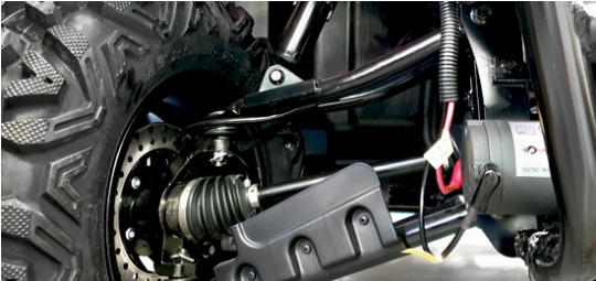 Robustný podvozok s nízkym ťažiskom zaručuje skvelú stabilitu a výbornú priechodnosť terénom. Všetky kolesá sú nezávisle zavesené a odpružené ľahko nastaviteľným pružením. Vysokú obratnosť a vynikajúcu ovládateľnosť zaisťuje aj elektrický posilňovač riadenia a veľmi malý polomer otáčania.