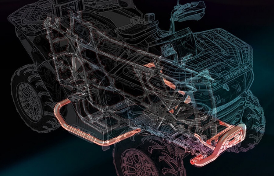 | Výbava: | dvojité sedadlo s opierkou pre spolujazdca a integrovanými madlami, elektrický posilňovač riadenia, elektrický navijak, ťažné zariadenie, kompozitné nosiče vpredu aj vzadu, digitálny multifunkčný displej, Full-LED osvetlenie, predný ochranný rám, zadný ochranný rám, bočné ochranné rámy, 14 "hliníkové disky, pruženie s progresívne vinutými pružinami, ochranné kryty rukovätí | |