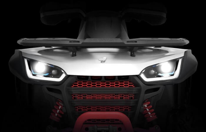 | Výbava: | dvojité sedadlo s opierkou pre spolujazdca a integrovanými madlami, elektrický posilňovač riadenia, elektrický navijak, ťažné zariadenie, kompozitné nosiče vpredu aj vzadu, digitálny multifunkčný displej, Full-LED osvetlenie, predný ochranný rám, zadný ochranný rám, bočné ochranné rámy, 14 "hliníkové disky, pruženie s progresívne vinutými pružinami, ochranné kryty rukovätí | |
