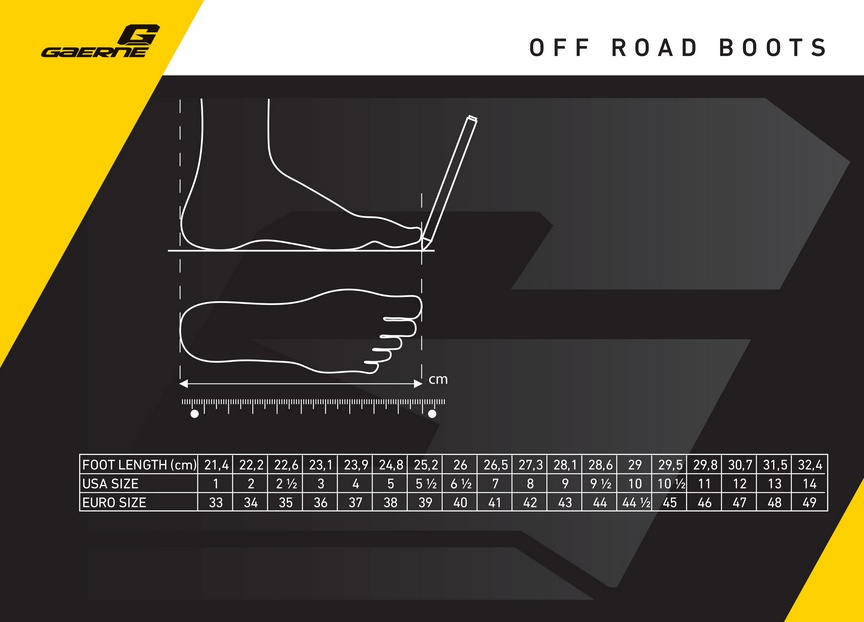 Gaerne GX-1 Obsahuje odľahčený dizaj s elegantnou novou sponou z ľahkých zliatin system v bočnej časti. Dokonalá integrácia outtersole s lisovanej ocele, chráni nohy pred zranením. Štrukturálna podpora besteht dvoch oka urobila snímku vnútri určených vreckách, predné a zadné Vyhnúť sa overextension zároveň poskytuje flex dopredu a dozadu, to je proti krúteniu. Na hornej strane razený semiš pre zvýšenú priľnavosť a tepelnú odolnosť. Systém uzatvárania pozostávajúci zo 4 výmenných spôn z ľahkých zliatin pre jednoduché, rýchle a presné uzatváranie. Odstránením prvé dve pracky na vrchole je možné, aby sa otvor zvätčil pre väčšiu nohu alebo podkolienky. Exkluzívna podrážka z gumy s vysokou priľnavosťou zaručuje trvanlivosť, vynikajúcu priľnavosť a dokonalý pocit pri jazde. [čítať viac]