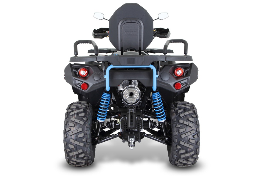 Homologované ťažné zariadenie, elektrická uzávierka predného i zadného diferenciálu, elektrické prepínanie pohonu 2x4 / 4x4, pancierované brzdové hadičky, atraktívny 8paprskové hliníkové disky, značkové 25 "pneumatiky, chrániče rúk na riadidlách, robustný predný nárazník, kompozitný nosiče batožiny, samostatné sedadlo spolujazdca s opierkou chrbta a madlami, vodotesný navijak 3000 lbs, 12V zásuvka, Full-LED osvetlenie.
